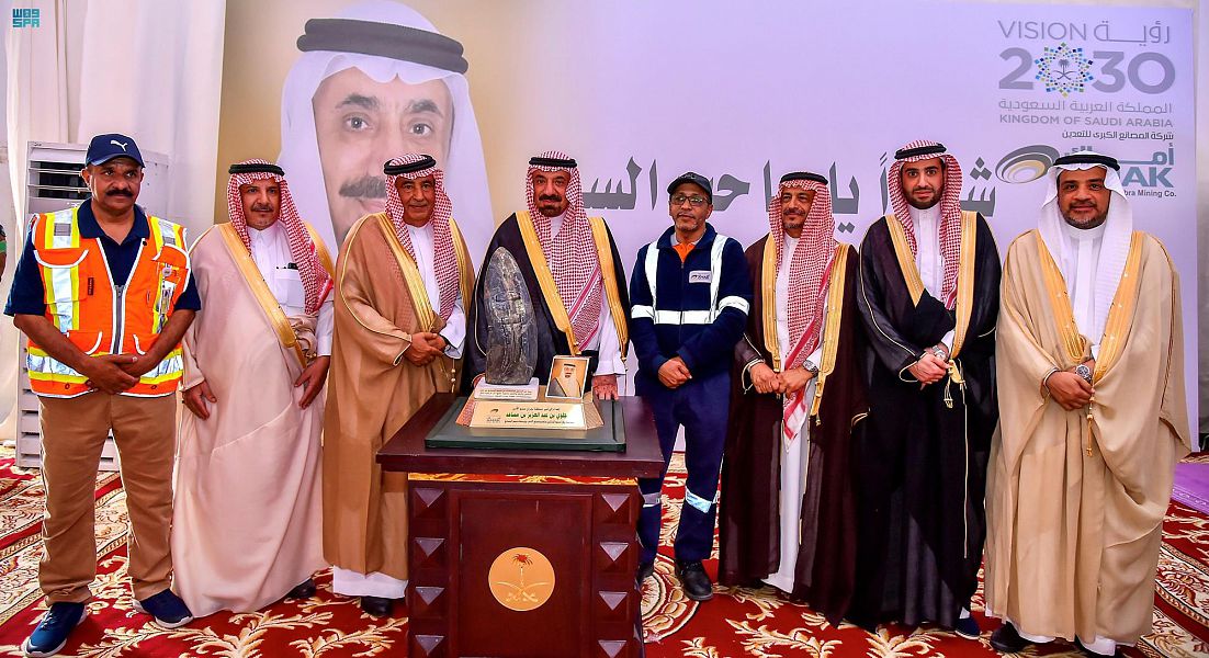 His Highness said: "God's love for the Kingdom with blessings and great wealth requires thanks to God Almighty first and then to the leadership of this country, which made the citizen at the forefront of its attention, pointing out that mining projects come in line with the Kingdom's vision 2030, expressing his happiness to enable Saudi youth to work in projects Company, wishing everyone good luck.